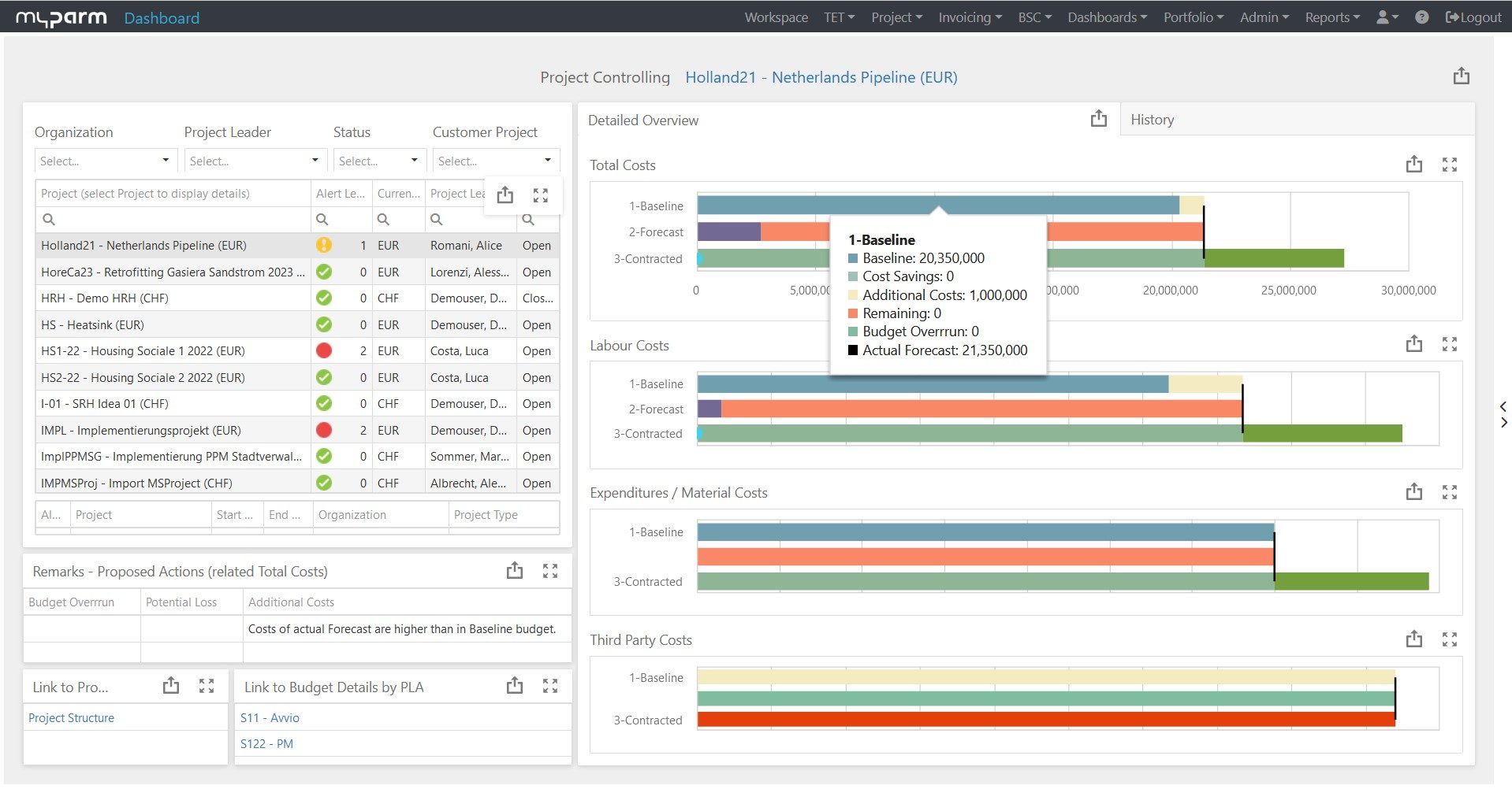 „myPARM überzeugt durch die enge Verzahnung von Strategie- und Projektmanagement sowie seine herausragenden Finanzcontrolling-Funktionen. Die Software deckt alle Phasen vom Ideenmanagement über Portfolio- und Projektplanung bis hin zur Abrechnung ab – inklusive CRM- und ERP-Integration. Besonders für kapitalintensive Projekte und Ingenieurdienstleistungen bietet myPARM eine starke Lösung, die kaum Wünsche offenlässt.“