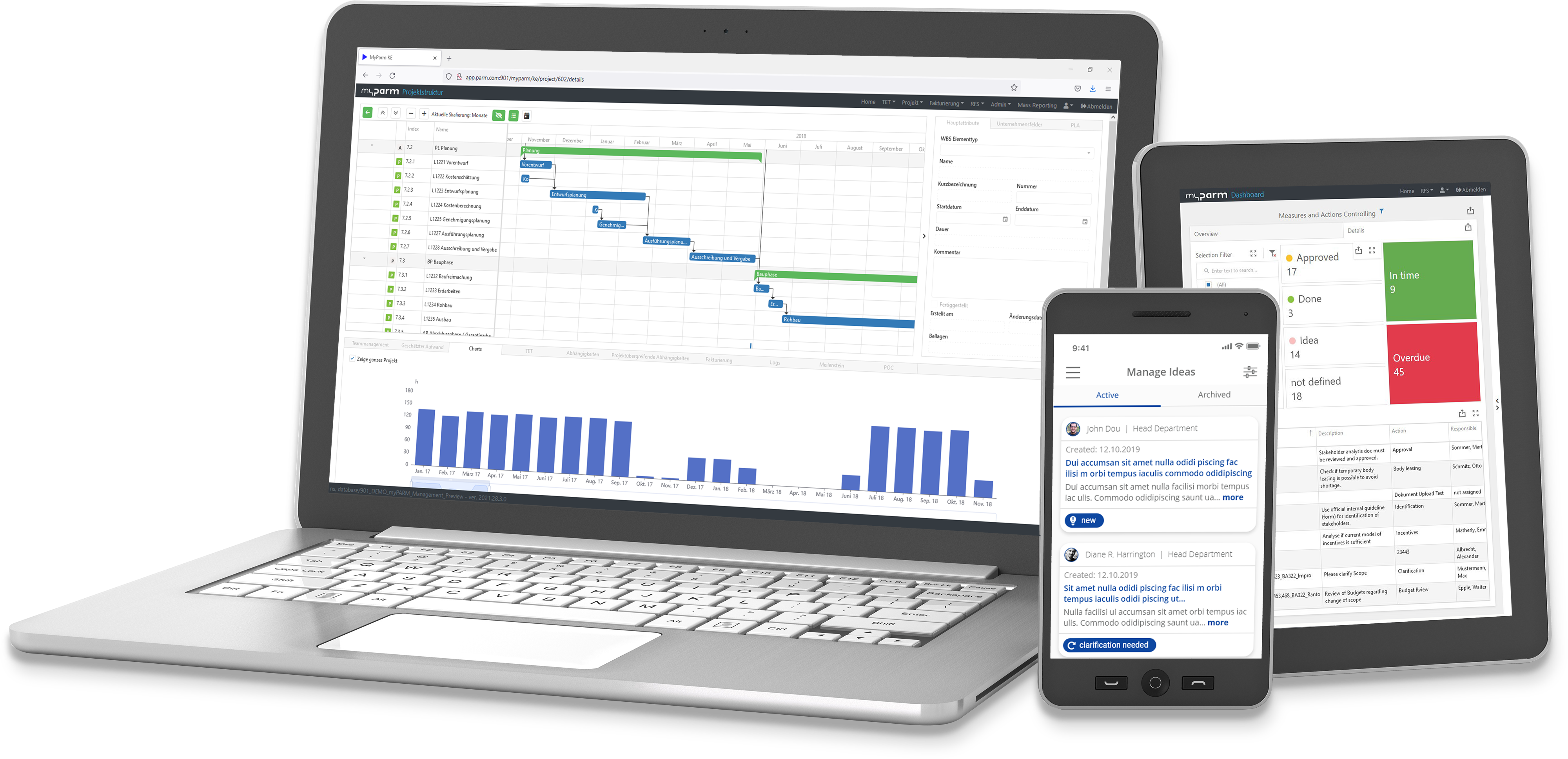 myPARM vous permet de planifier et de mettre en œuvre des projets et de suivre leur état en temps réel. Le logiciel vous aide également à planifier les ressources, à gérer les risques et à prendre des décisions basées sur des données.