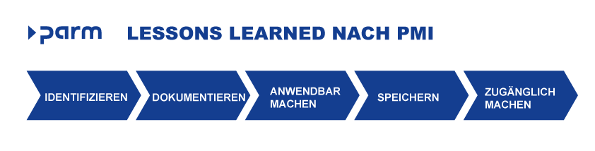 Das Project Management Institute (PMI) hat hierfür einen fünfstufigen Prozess gestaltet, der Ihnen bei der Einführung von Lessons Learned helfen kann: